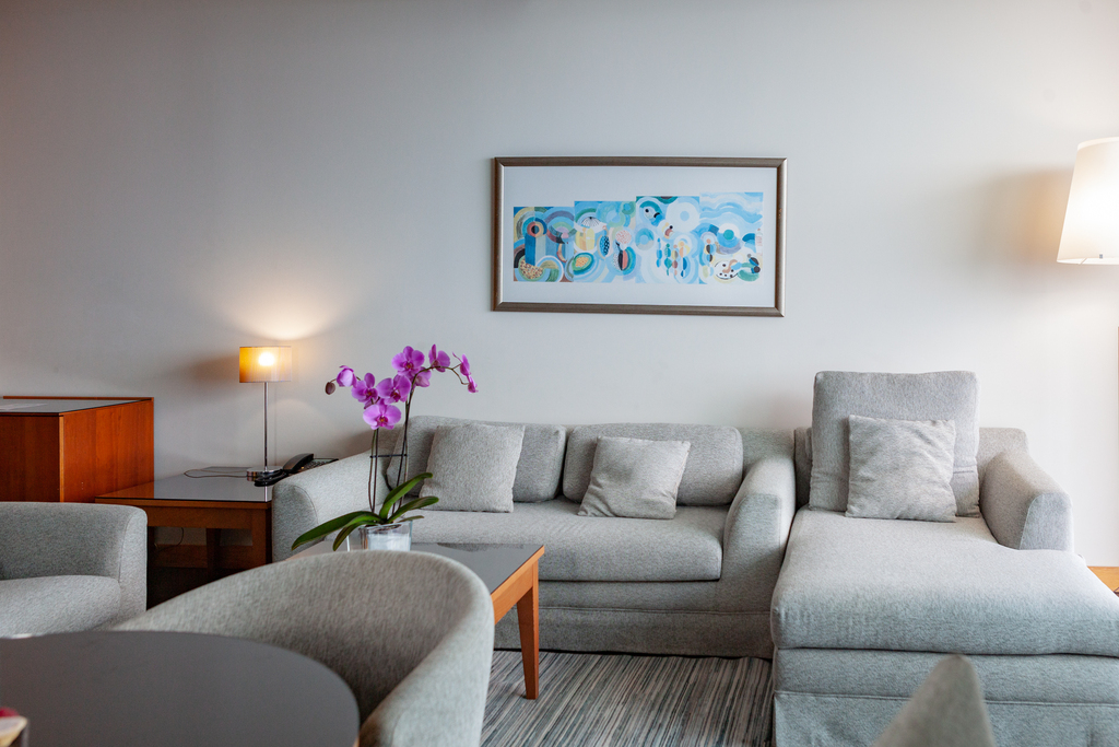 51m2 Suite with Separate bedroom with King-size bed and side window. Spacious living room with comfortable sofa-bed, patio window and a private balcony overlooking the Atlantic Ocean. Bathroom with a bath/shower, hair dryer and magnifying mirror. Air conditioning, safe, refrigerator, kettle, LCD cable TV with 30 channels, direct line telephone, Wi-Fi, 24-hour room service.